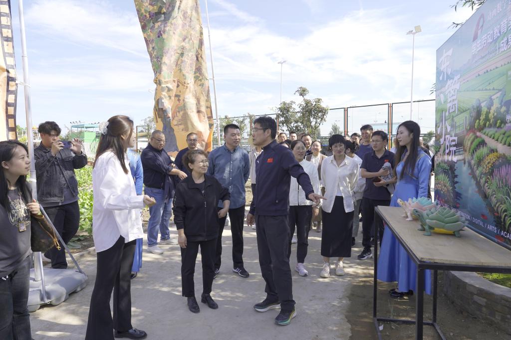 张子言致辞。他指出,作为艺术类高校,我校一直致力于培养有理想、有情怀、有技艺的高素质艺术人才,本次丰收节暨乡村艺术节是我校开展艺术教育和艺术文化活动的具体行动。期待通过此次活动进一步深化产教融合,探索艺术赋能乡村振兴的新路径,全方位培养学生的道德品质、知识技能、艺术素养和社会交往能力,实现立德树人。