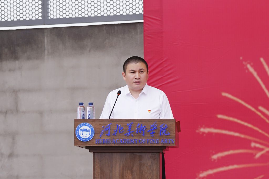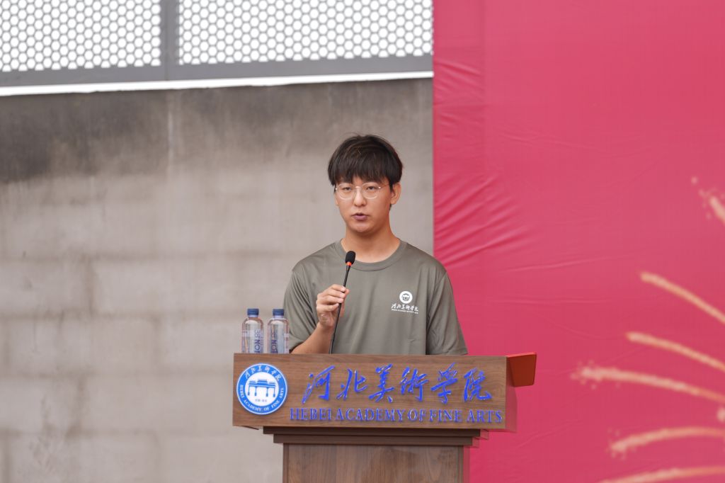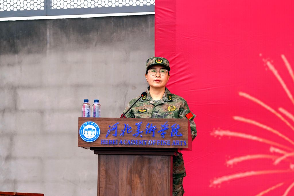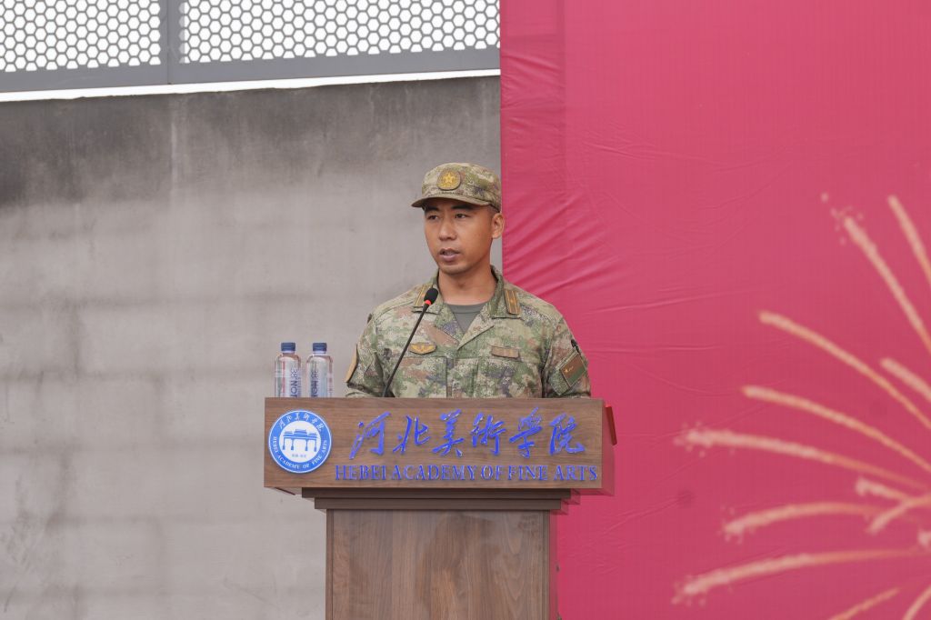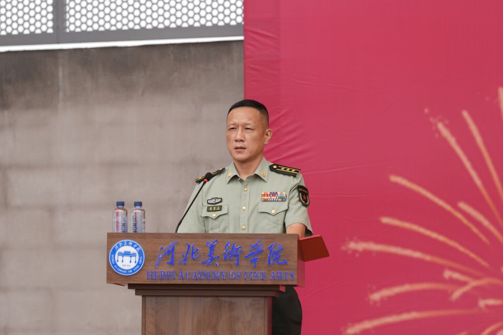 甄忠义宣布“河北美术学院2025级新生军训”开训。