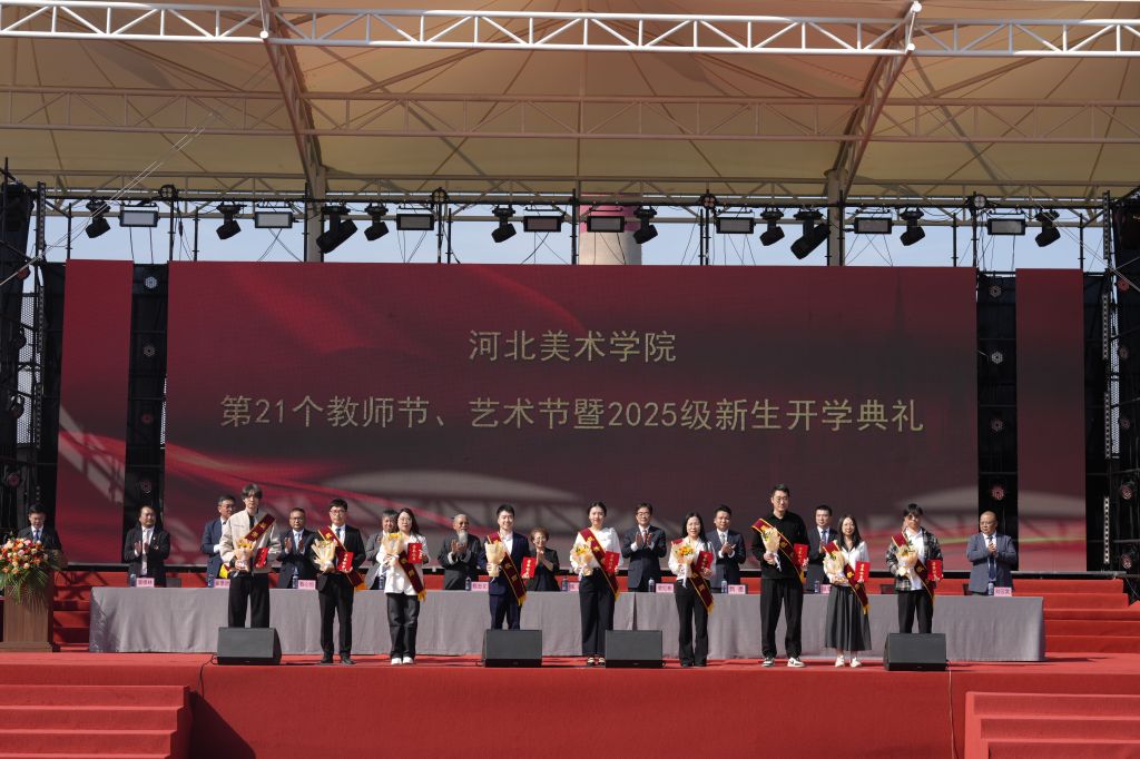 9月28日上午,河北美术学院第21个教师节、艺术节暨2025级新生开学典礼在校体育场举行。学校理事长张丽,学校举办者、校长甄忠义,督导专员、党委书记裴红彬,执行校长甄墨,常务副校长张建敏,副校长张子言,党委副书记、副校长甄心恒,党委副书记、副校长麻立峰,副校长崔景哲,校长助理刘云昊、曾维林,学校老领导、老教授代表,以及教职工代表、新生家长代表、校友代表、老生代表、2025级新生参加典礼。典礼由党政办公室主任周哲主持。