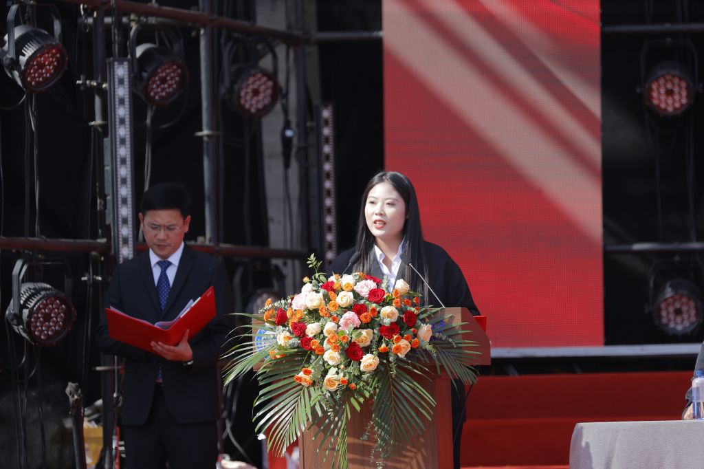 甄忠义致辞。他全面回顾了过去一年学校在党建思政、教育教学、科研创新、展馆育人、水上运动、国际交流、学生就业等方面取得的显著成果,并深入阐释了学校“盖大楼、请大师、铸大爱”的办学理念。他寄语新一代河美人,要心怀家国天下、涵养世界眼光,紧跟时代潮头、勇担创新使命,坚持学用济世、不断砥砺奋进,奋力交出一份无愧于历史、无愧于人民、无愧于时代的青春答卷。