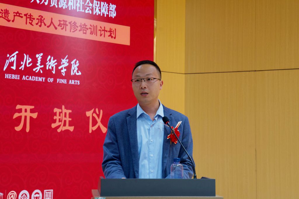 河北省文化和旅游厅非遗处副处长焦照旺,省人社厅职建处处长张盛江,省非遗保护中心书记杜云生,省非遗保护协会副会长兼秘书长张雪芳,新乐市文广旅局局长李立波等省市部门、行业协会嘉宾;河北美术学院副校长张子言,国际学院院长兰新成,设计学院院长董小龙等学校领导;雕刻项目合作单位泉州华光职业学院副理事长邱少煌等出席仪式。仪式由河北美术学院非遗研究中心副主任唐景词主持。