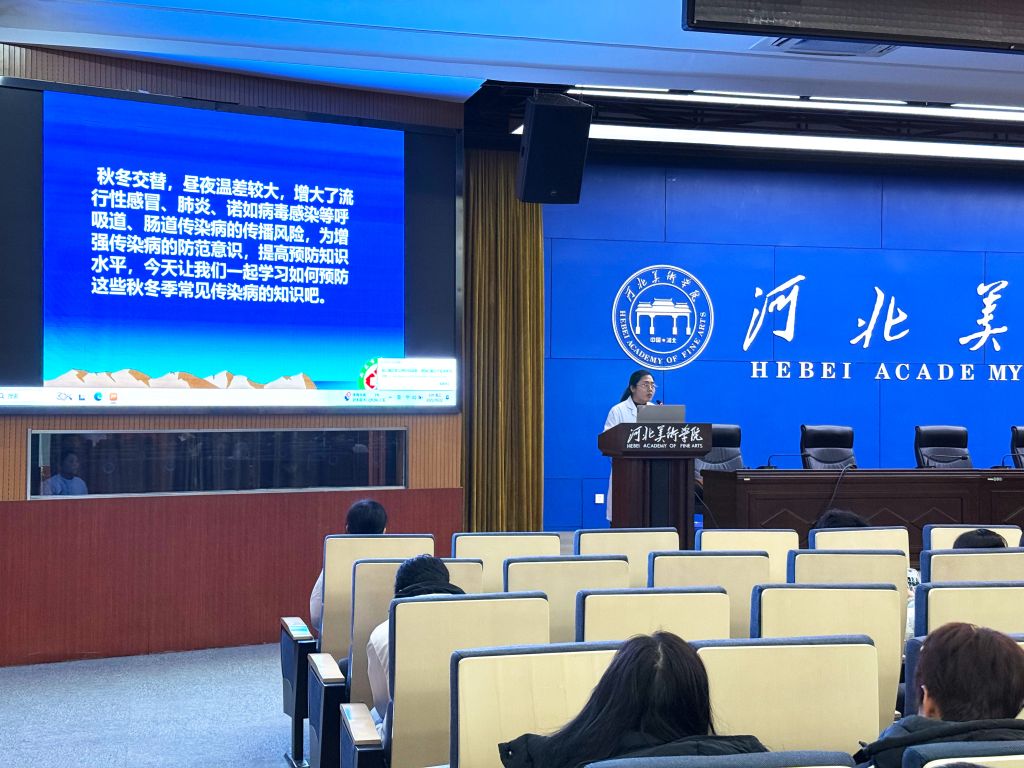 为提升我校师生的健康素养与自我防护能力,有效预防秋冬季传染病的传播,构筑坚实的校园健康屏障,后勤管理与服务处、学生工作处联合新乐市中心医院于10月22日上午,在正成报告厅举办了第七期“健康进校园”知识讲座及校园义诊活动,吸引了众多师生踊跃参与。