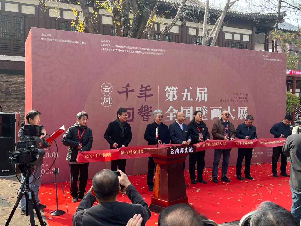 本届“云冈·千年回响——第五届全国壁画大展”主展区设于世界文化遗产云冈石窟并延伸至华严寺、善化寺、大同市博物馆等地,展出了近年来从全国遴选出的200多件优秀作品,涵盖传统壁画、公共艺术与数字媒介等多种形态,呈现出壁画艺术在新时代语境下的传承与创新。同时,举办了“壁上河山——2025全国壁画发展论坛”与《中国壁画百年·21世纪卷2000–2020》发布仪式。
