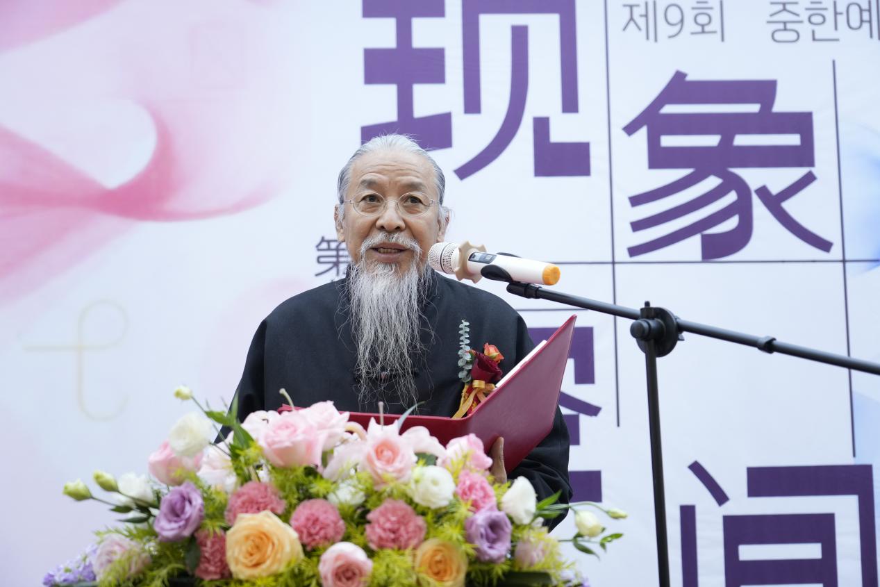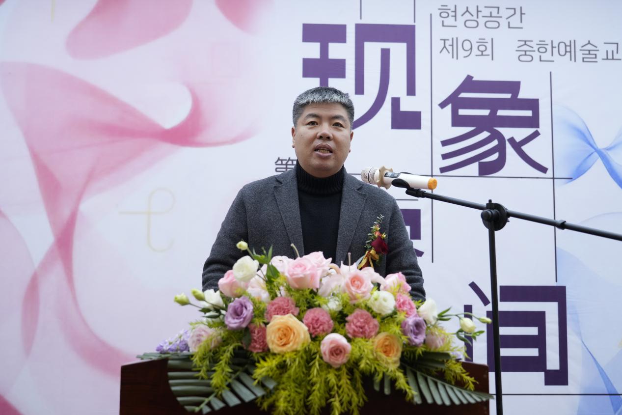 河北美术学院校长甄忠义强调,“中韩艺术交流展”是展示创作成果、探讨美术教育共同课题的重要平台。他表示,河北美术学院将继续以开放视野推动艺术教育的国际化,培养具有文化自信与国际视野的艺术人才,并宣布本届展览正式开幕。