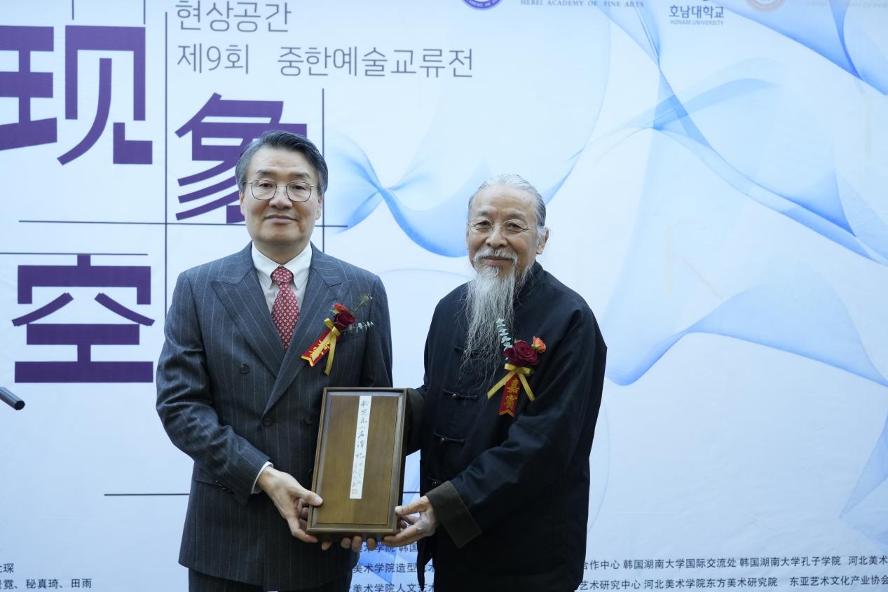 11月13日,由河北美术学院与韩国湖南大学联合主办,河北美术学院造型艺术学院、河北美术学院国际交流与合作中心、韩国湖南大学国际交流处、韩国湖南大学孔子学院与河北美术学院美术馆承办,河北美术学院人文艺术研究院、河北美术学院中韩文化艺术研究中心、东亚艺术文化产业协会与韩中美术协会协办的“现象空间—第九届中韩艺术交流展”在河北美术学院北校区美术馆第二展厅开幕。