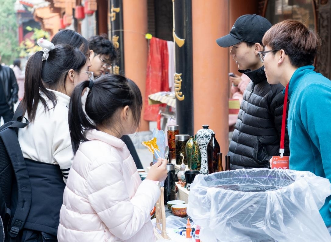 本次活动,学校主动开放鸡鸣城商业街、南校区城堡、草坪广场等核心景观区域,筹集了近20个专业160余名师生和140位非遗传承人及研培学员的教学作业和创意成果,搭建300个特色展位。不仅为在校师生、非遗传承人搭建了展示、交流、交易的平台,更通过将大型文化活动植入校园,成功吸引了来自全省乃至全国的非遗爱好者、游客与市民,单日吸引游客量超10万人,彰显了高校作为文化引擎对区域经济的强大拉动作用。