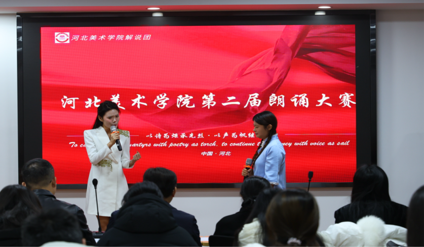 为传承红色基因,赓续红色血脉,12月5日,“以诗为炬承先烈,以声为帆继征程”为主题的朗诵大赛决赛在东方文化大讲堂圆满举行。本次大赛由河北美术学院解说团主办,各组织积极响应,参赛选手同台竞技,用深情朗诵致敬先烈,用昂扬之声续写时代征程。
