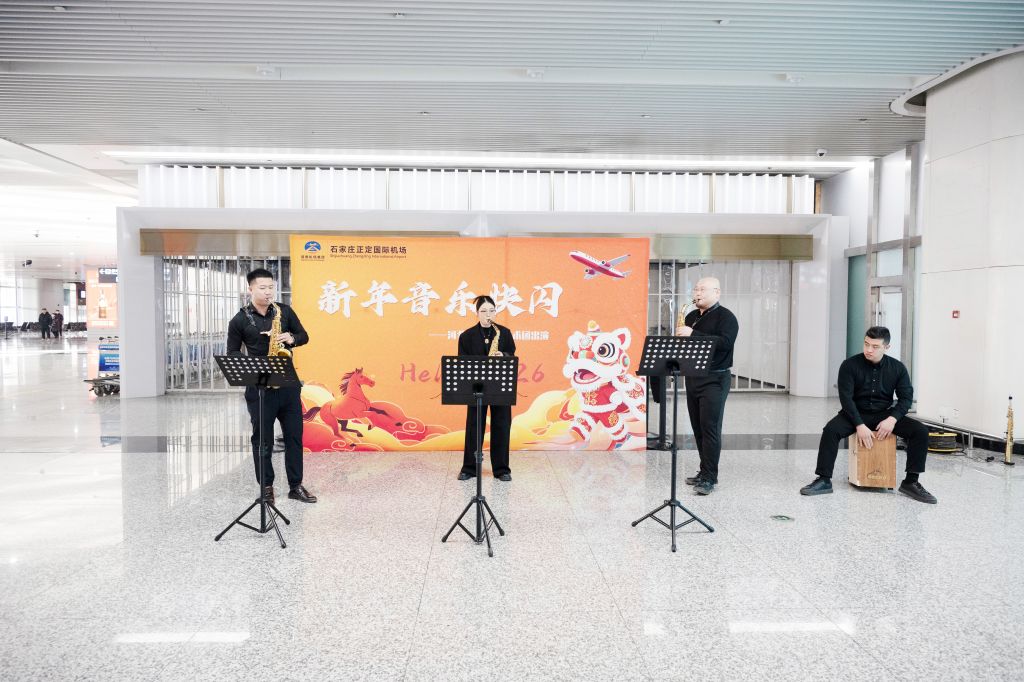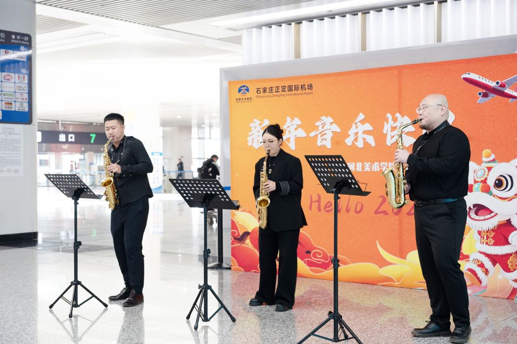 为充分彰显学校艺术教育的丰硕成果,切实履行美育服务社会的使命担当,1月1日上午10时,一场主题为“欢欢喜喜过新年”的快闪活动在石家庄正定国际机场温情启幕。河北美术学院民族乐团与交响乐团部分教师联袂登台,推动艺术走出校园,将美育转化为一堂生动鲜活的社会公共课。
