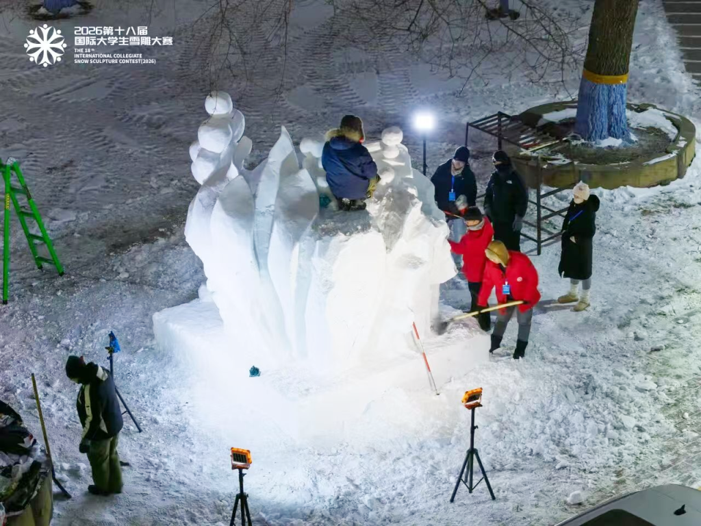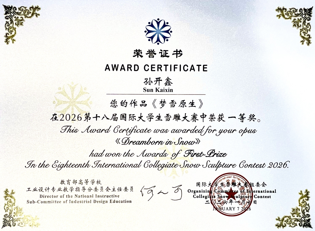1月7日,由教育部工业设计专业教学指导分委员会主办,哈尔滨工程大学承办的第十八届国际大学生雪雕大赛落下帷幕。我校雕塑与公共艺术学院师生作品《梦雪原生》斩获一等奖。