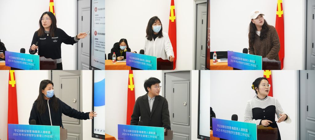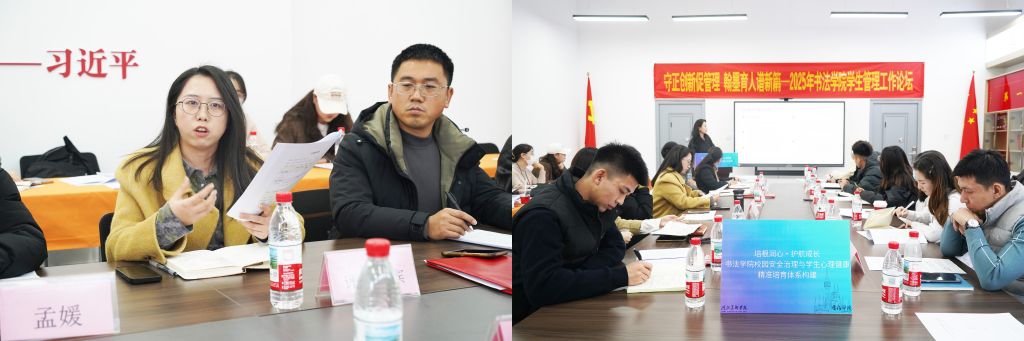 学生工作处副处长李倩、孙小慧,心理健康教育服务中心科长杨丹应邀出席,书法学院党总支副书记、副院长张政良及书法学院全体学管队伍人员参加会议。论坛围绕“辅导员队伍专业化建设与学风提质增效”“校园安全治理与学生心理健康精准培育体系构建”“毕业生高质量就业精准对接与发展赋能机制探索”三大板块展开,与会辅导员结合自身工作实际分享交流,复盘一年工作,明确整体育人队伍建设方向。