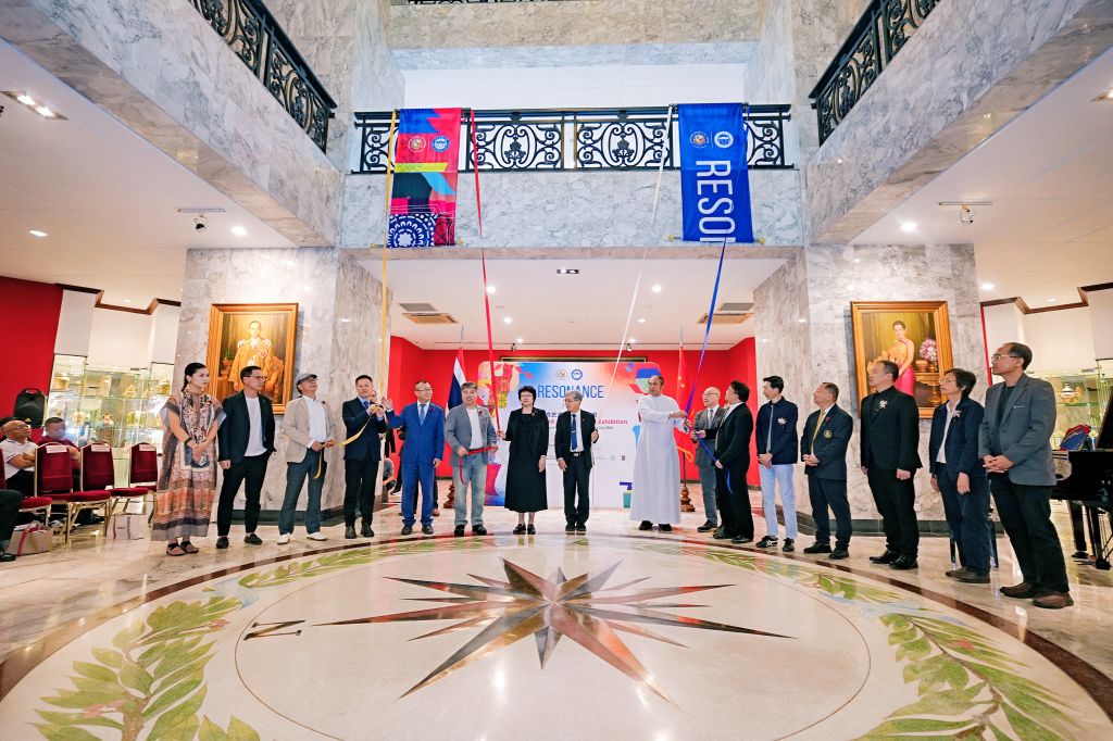 1月17日下午,“共鸣——中泰艺术家国际交流展·泰国展站”在泰国易三仓大学素万那普校区博物馆开幕。展览汇聚中泰两国多所高校艺术家,通过绘画、雕塑、装置等多样艺术形式,集中呈现当代艺术在不同文化语境中的探索与表达,持续推动中泰艺术领域的学术对话与文化交流。中华人民共和国驻泰王国大使馆教育参赞许兰,泰国高等教育、科学、研究与创新部高等教育委员会副主席基蒂猜·特里拉塔那西里猜 教授(Assoc. Prof. Dr. Kittichai Triratanasirichai),泰国易三仓大学校长西里猜·丰色卡博士(Rev. Bro. Dr. Sirichai Fonseka),河北美术学院常务副校长张建敏,联合国教科文组织乡村创意与可持续发展教席、北京大学教授向勇,中央美术学院国际交流处处长王川等出席开幕式。