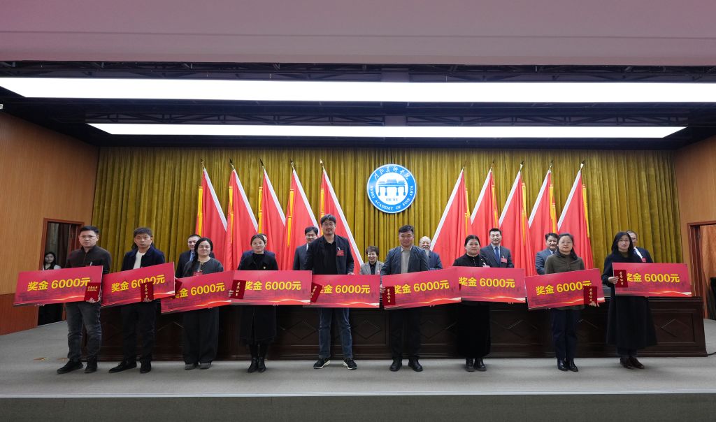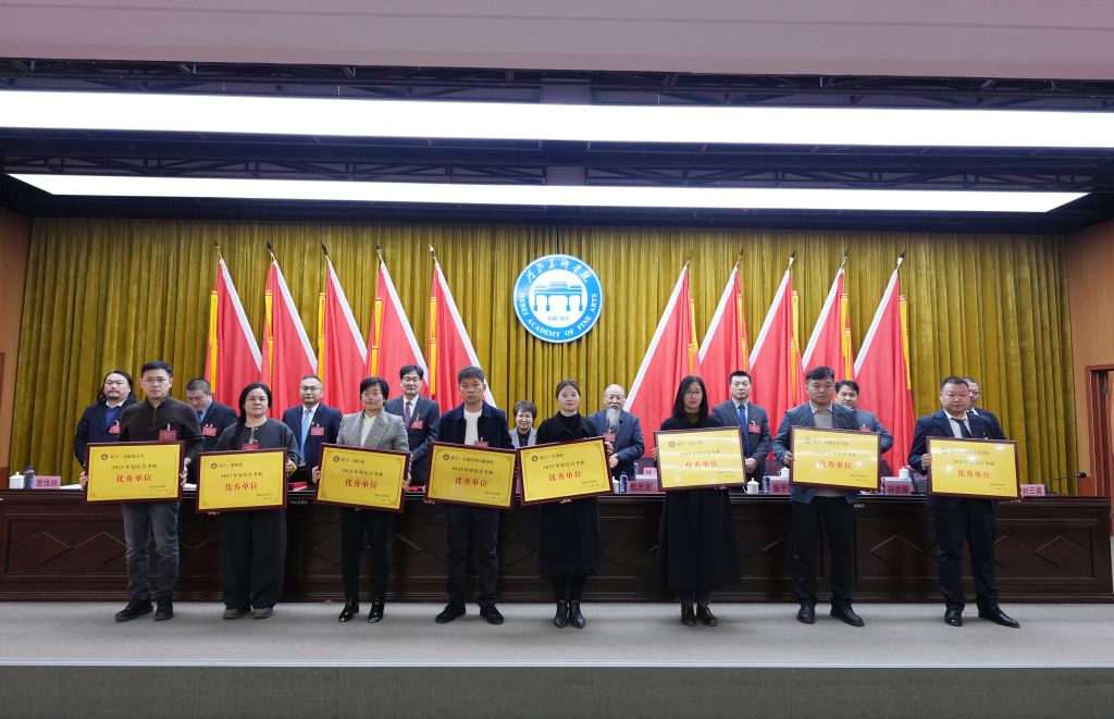 随后召开了2025年度优秀中层领导干部表彰大会。甄心恒宣读《河北美术学院关于表彰2025年度综合考核优秀单位及中层领导干部的决定》。与会校领导为党政办公室、设计学院等8个综合考核优秀单位,周哲等20名优秀中层领导干部颁奖。
