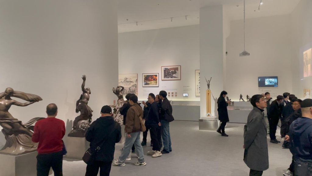 考察团先后参观了四川美术学院雕塑系、校美术馆及专业教学工作室。在雕塑系,考察团系统了解学科历史、专业布局、课程体系,观摩教学成果与实训管理机制;在美术馆,考察团认真参观当代创作精品,深入研讨雕塑创作、公共艺术实践,感受川美雕塑的学术积淀与创新活力;在各专业工作室,考察团实地查看材料实验情况、创作流程、实训条件与成果转化机制,就工作室运行、实践教学组织、传统工艺传承创新等内容进行交流。