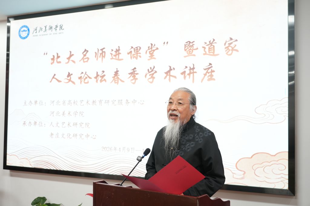 4月9日至10日,国际知名学者、北京大学讲席教授、北京大学道家文化研究中心主任、河北美术学院老庄文化研究中心顾问陈鼓应先生携学术团队莅临我校,举办“北大名师进课堂”暨道家人文论坛春季学术讲座(总第238-242场)。讲座由河北省高校艺术教育研究服务中心与河北美术学院联合主办,河北美术学院人文艺术研究院、老庄文化研究中心共同承办。学校举办者、校长甄忠义等领导出席讲座。