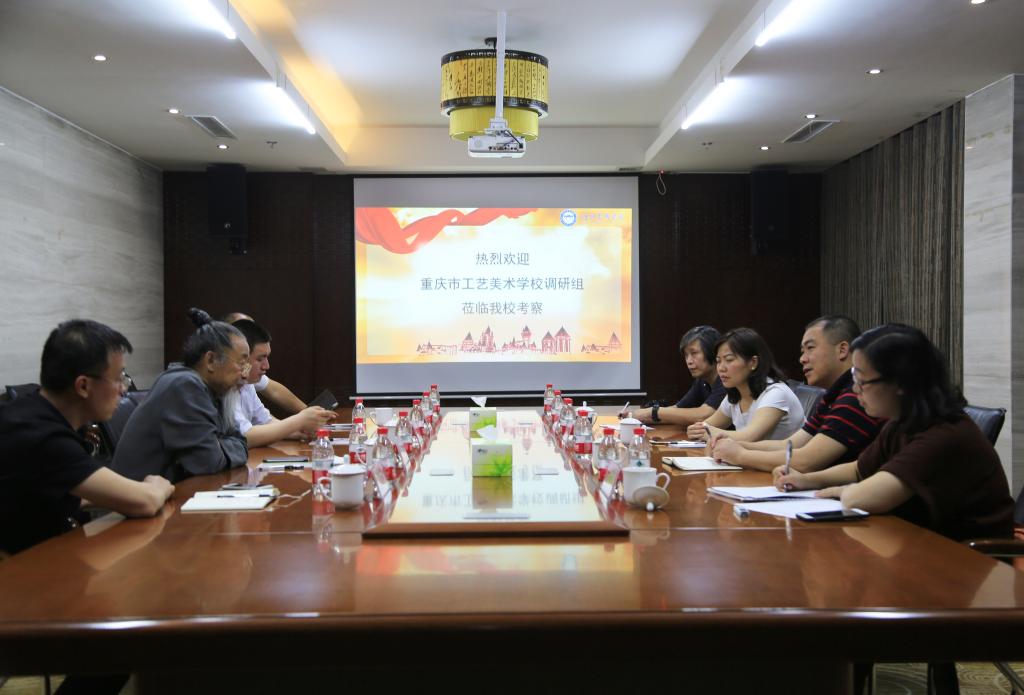 2018年5月10日上午,重庆市工艺美术学校党支部书记、副校长王曦川一行4人来我校考察交流。我校校长甄忠义及相关单位负责人在老庄文化研究中心道通为一会议室接待来宾。