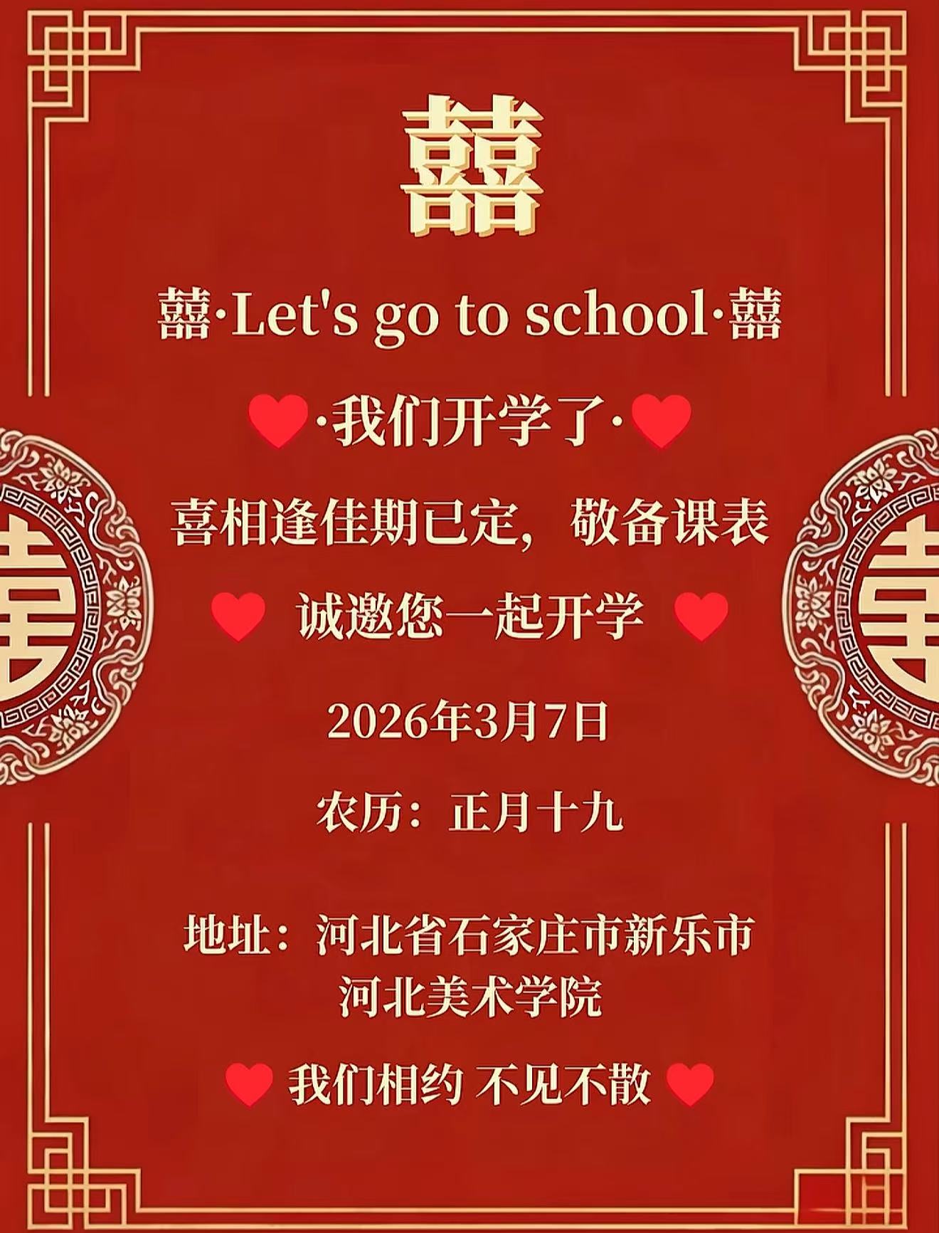 佳期已定,奔赴新程 3月7号,我们开学见❤️